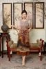 Áo dài cách tân - Cổ tròn tay ngắn - CD - Nâu họa tiết - TTV1999