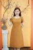 Đầm form A - Cổ vuông tim kết ngọc tay búp - CT - Vàng đồng - TTV1564