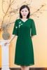 Đầm suông - Cổ tim thêu hoa tay lỡ - CT - Xanh lá - TTV1861