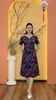 Đầm suông - Cổ tròn khoét V kết nút tay ngắn - CD - Xanh hoa nhí - TTV
