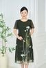 Đầm suông - Cổ tròn tay ngắn - CD - Xanh rêu họa tiết - TTV1960