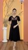 Đầm suông xòe - Cổ tim thêu hoa tay ngắn - CT - Đen - TTV1976