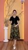 Đầm xòe - Cổ lục giác kết nút tay ngắn - CV - Đen họa tiết - TTV2013