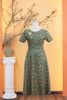 Đầm xòe - Cổ sóng nước tay ngắn - CV - Xanh hoa - TTV1745