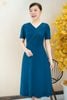Đầm xòe - Cổ tim đắp chéo tay ngắn - CT - Xanh cổ vịt - TTV1487