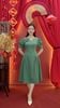 Đầm xòe - Cổ tim kết hoa tay nhún phồng - AH - Xanh đậu - TTV2027
