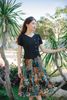 Đầm xòe - Cổ tim kết nút tay ngắn - CD - Đen họa tiết - TTV1344