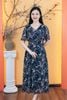 Đầm xòe - Cổ tim tay loe - CT - Xanh hoa - TTV1787