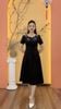 Đầm xòe - Cổ tròn khoét V kết ngọc tay ngắn - AH - Đen - TTV1995