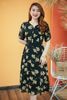 Đầm xòe - Cổ tròn khoét V tay ngắn - CD - Đen hoa kem - TTV1413