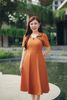 Đầm xòe - Cổ vuông cánh én kết nút tay ngắn - AH - Cam đất - TTV1571