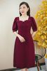 Đầm xòe - Cổ vuông kết ngọc tay lỡ - CT - Đỏ đô - TTV1504