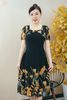 Đầm xòe - Cổ vuông tay ngắn - CT - Đen hoa vàng - TTV1496